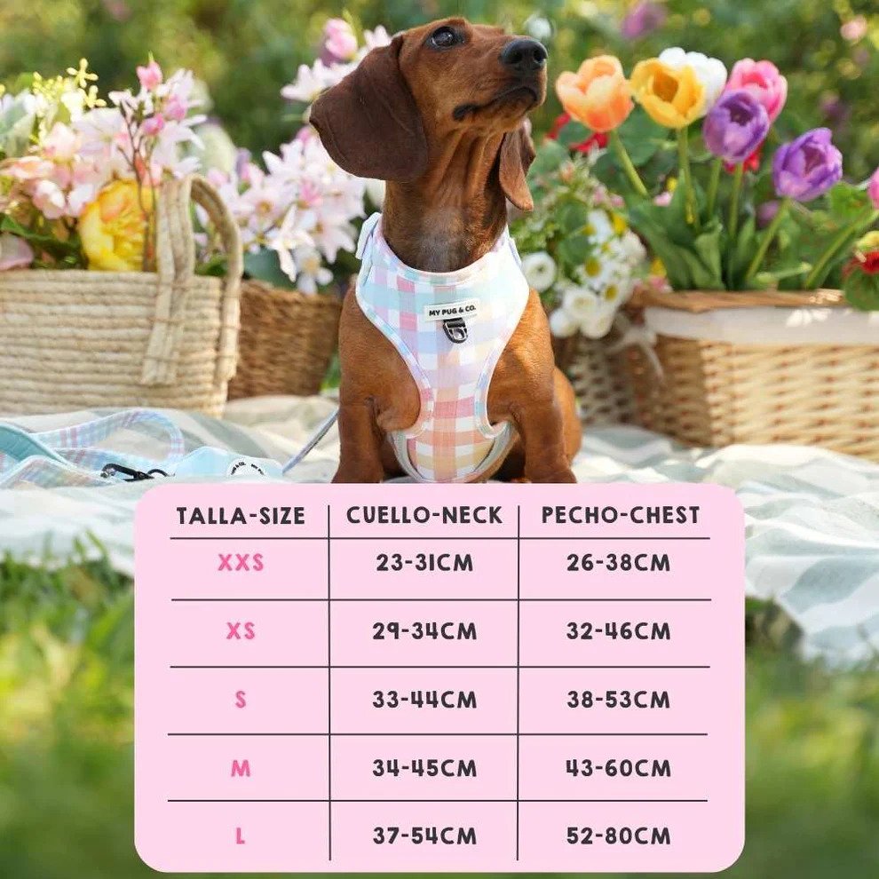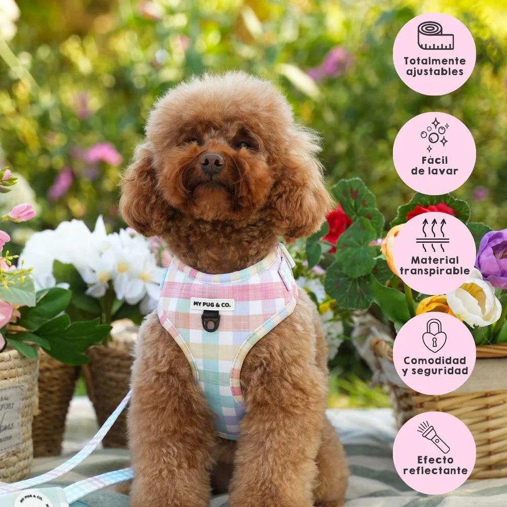 - Arnés ajustable tanto en el cuello como en el pecho, ajustándose de forma cómoda a perros de todos los tamaños.