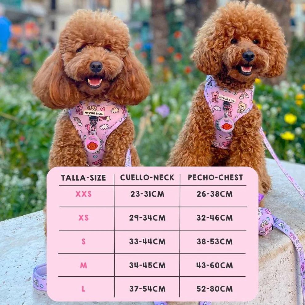 - Arnés ajustable tanto en el cuello como en el pecho, ajustándose de forma cómoda a perros de todos los tamaños.
