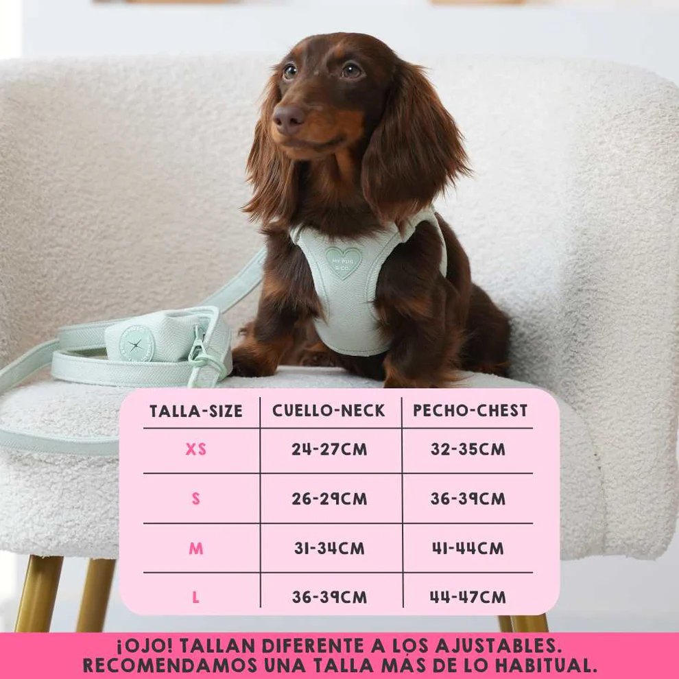 • Ojo! El tallaje es totalmente diferente a los arneses ajustables.Arnés especial para perritos que nos le gustan meter la cabeza en los arneses.