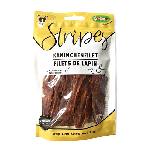 Estas sabrosas tiras de conejo, son ideales como recompensa, altamente digeribles, bajo en grasa y rico en proteinas esenciales.