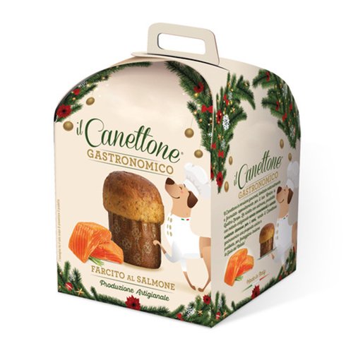 Este delicioso «Canettone» (el panettone de los ‘Cane’) está especialmente formulado para perros. Olvídate de las pasas o la fruta confitada; esta versión viene con un sabor que le volverá loco: salmón intenso y sabroso.